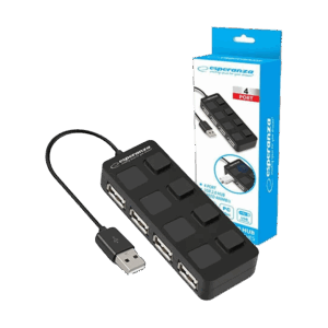 4-port, small, compact, high-speed USB HUB. The ideal solution for people who need to more USB sockets in their desktop or laptop. Hub allows you to connect simultaneously devices such as .: MP3 players, digital cameras, scanners, printers (ink jet / laser), memory stick, multifunction devices, external hard drives, keyboard, mouse and all other USB devices. It enables charging devices adapted to this type of power supply (eg. Mobile phones). Runs under Windows 98/2000 / ME / NT / XP / Vista / Windows 7, as well as Unix and Mac OS 8.6 or higher. Cable length: 60 cm Requires USB 2.0 port