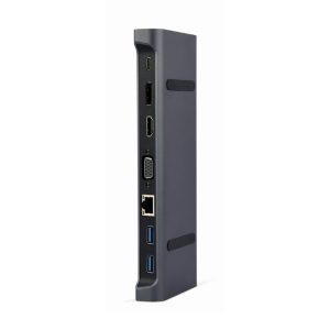 VideoDocking station USB adapter Type-C 9-in-1 multi-port adapter, USB hub + HDMI + VGA + PD + card reader + LAN + audio, space grey GEMBIRD A-CM-COMBO9-01
