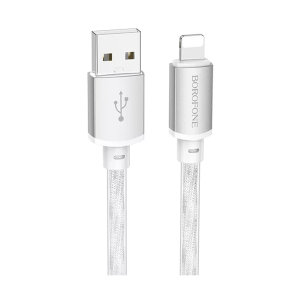 USB kabal BOROFONE BX95 Vivid silicone charging data cable 1m, 2,4A, iPhone/lightning silver