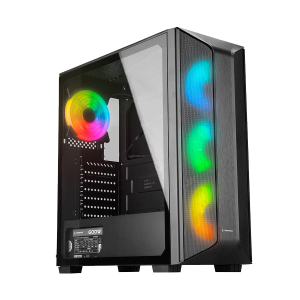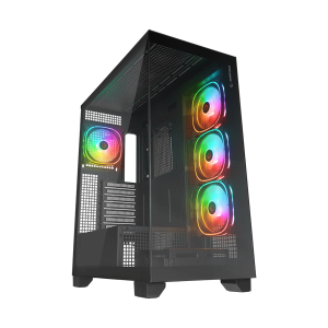 ATX, 486 x 220 x 473 mm HxWxD, 4x 120mm ARGB fans, Drive bays: 2×2.5, 3.5 , Expansion slots:7, Front I/O port: HD audio, Type C 3.2, 2xUSB 3.0, Radiator support: Front (120,140,240,360), Top(120,140,240,280,360), Rear(120), Max CPU cooler: 170mm height, Max PSU length: 180mm, Max Gpu length: 400mm