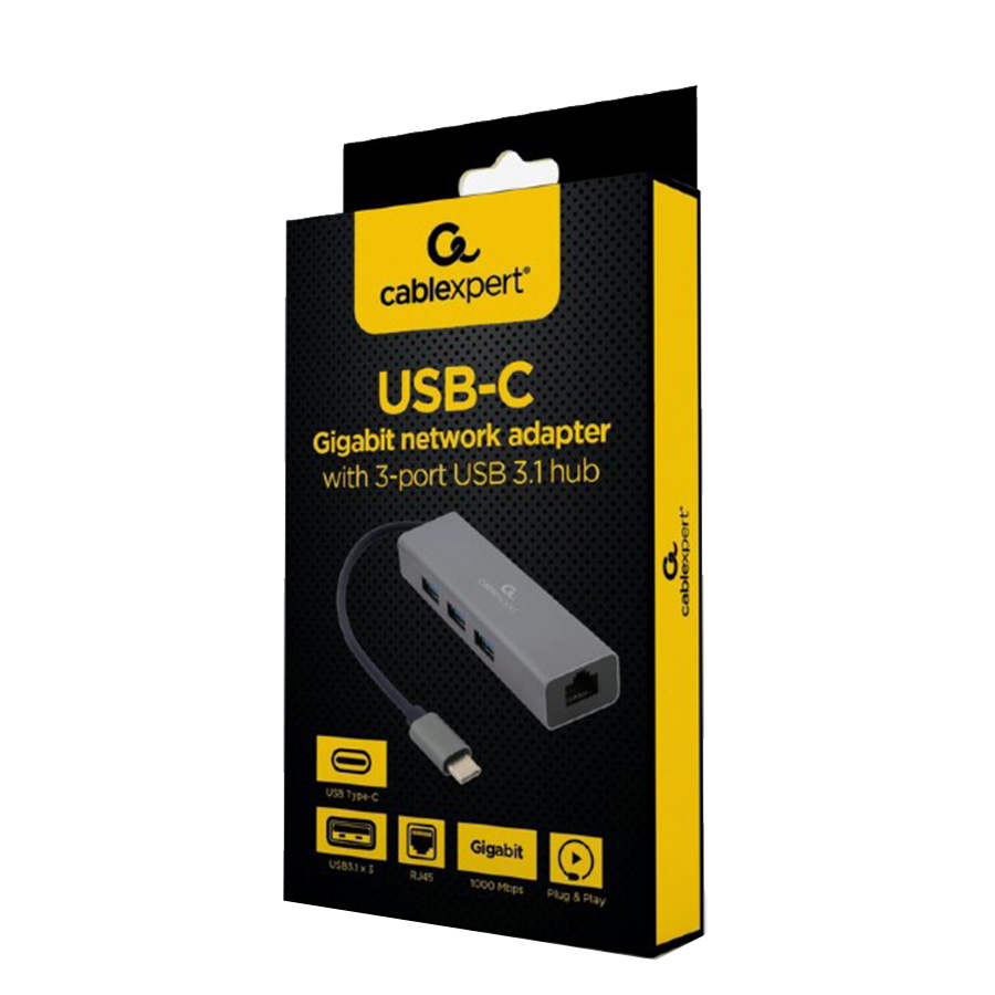 Docking station GEMBIRD USB adapter Type-C Gigabit ethernet 3-port + USB hub 3.1 A-CMU3-LAN-01