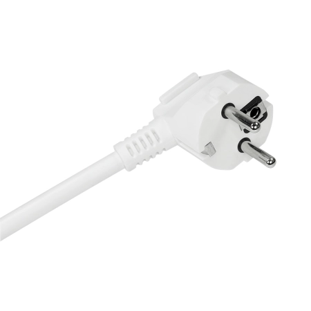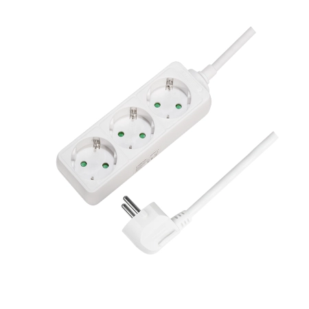 3x safety sockets, Outlets in 45° position, Sockets with safety shutter, IP20: Protection against the penetration of solid objects >12.5 mm and contact with fingers, Angled safety plug, Power: 230 V/16 A, 50 Hz, max. 3500 W, Cable Spec.: H05VV-F 3G 1.5 mm2, Cable length: 1.5 m