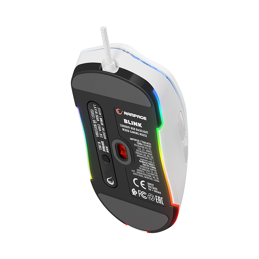 Miš gaming RAMPAGE BLINK White 7 Macro Keys RGB 12800 DPI, 40073