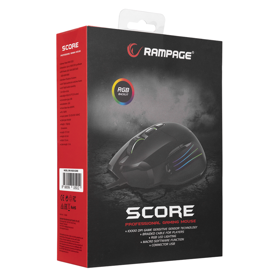 Miš gaming RAMPAGE SMX-R650 SCORE Usb Black, RGB illuminated 10000 Dpi, PMW-3325, 8D. Programable Gaming Mouse