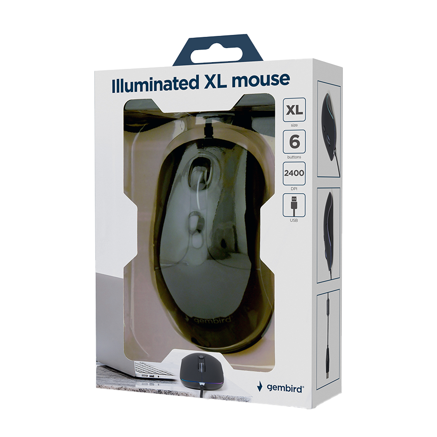 Miš GEMBIRD MUS-UL-02, USB, large size illuminated, black, 2400 dpi