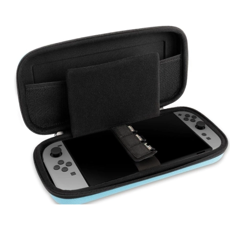 Designed to fit the Nintendo Switch 2 console and its accessories, Also compatible with Switch, Switch Lite and Switch – OLED Model game consoles, Separate compartments for the console with attached Joy-Con 2 controllers, the power adapter with cables and the Joy-Con 2 Grip, the Nintendo Switch 2 Pro Controller or a pair of additional Joy-Con 2 controllers, The organizer on the bottom of the divider holds up to ten game cards