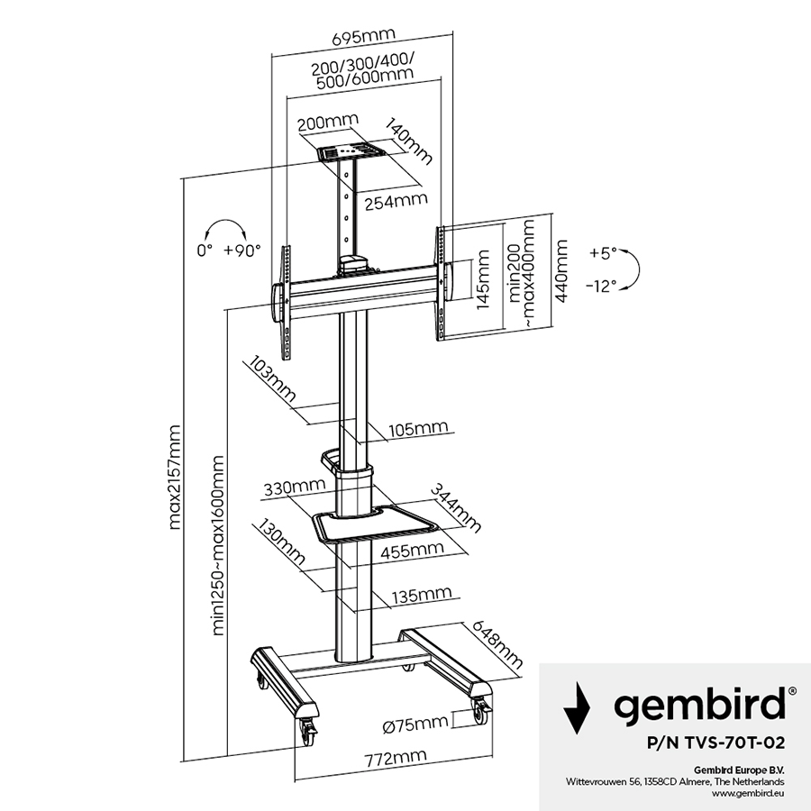 Nosač za TV na stalku aluminum na tockovima TVS-70T-02