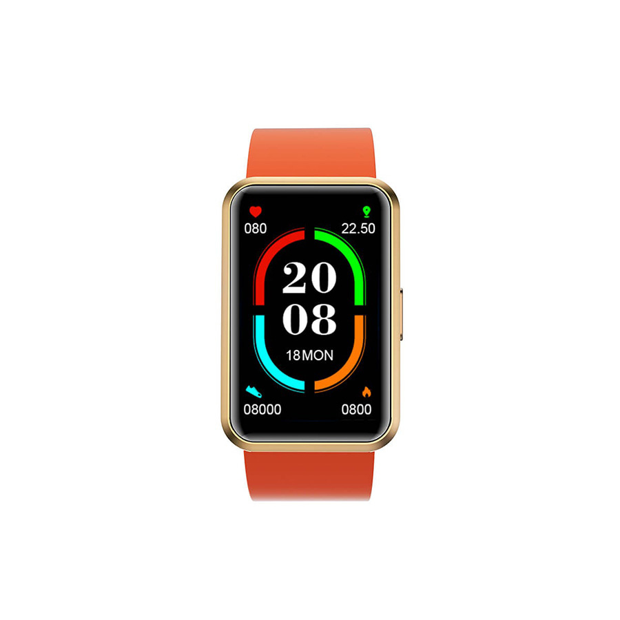 Product R5, Color Black, Pink, Orange, Weight 25g, Dimensions 46.3*30*10.5mm, Mechanical, , Screen Size 1.57″, Screen Type TFT-LCD, Screen Cover 3D-curved Tempered Glass, Bottom Material Aluminum alloy casing, Plastic bottom shell, Strap Material TPU strap + metal buckle, Hardware, , CPU Realtek8762DK, G-sensor Support, Accelerometer Support, Blood Oxygen Monitoring Support, Heart Rate Monitoring Support, Motor Support, GPS No, Screen 1.57″ TFT-LCD, Screen Resolution 200*320, Flash 384KB, RAM 160KB, Bluetooth 5.0, Power, , Standby time with Bluetooth connected >60 Days, Typical daily use 12-15 days, Battery type Lithium polymer battery, Battery capacity 260mAh, Charging method Magnetic charging, Charging time ? 2 hours, Function, , 8 Languages Support English, German, French, Italian, Spanish, Japanese, Russian, Portuguese, Reminder call reminder, text message reminder, sedentary reminder, alarm clock reminder, Dial 4 Customized Dials, Pedometer exercise step count, calorie consumption calculation, exercise mileage record, , Sleep monitoring sleep quality monitoring, Heart rate All-day heart rate monitoring: 24-hour uninterrupted high-precision heart rate detection, focusing on and understanding your health, Blood Oxygen Level All-day Blood Oxygen monitoring, 24 Sport modes Indoor running, Dance, Cycling, Rowing, Gymnastics, Sport walking, Spinning bike, Situps, Yoga, Rugby, Hockey, Volleyball, Tennis, Baseball, Cricket, Football, Basketball, Mountaineering, Free-style exercise, Badminton, Table Tennis, Skipping, Swimming, Outdoor running, 0ther functions stopwatch, countdown, music control, breathing training, flashlight, raise the hand to brighten the screen, APP download QR code, , Notification reminder (IOS Android) Twitter, Facebook, Linkedin, whatsApp, Line, lnstagram, snapchat, skype and other timely information, , SMS push, incoming call push, , Time setting synchronization, , Package List, , R5 Smartwatch x1, Strap x1, Charging Cable x1, User Manual x1