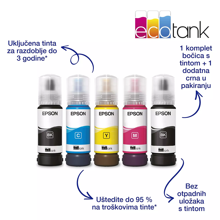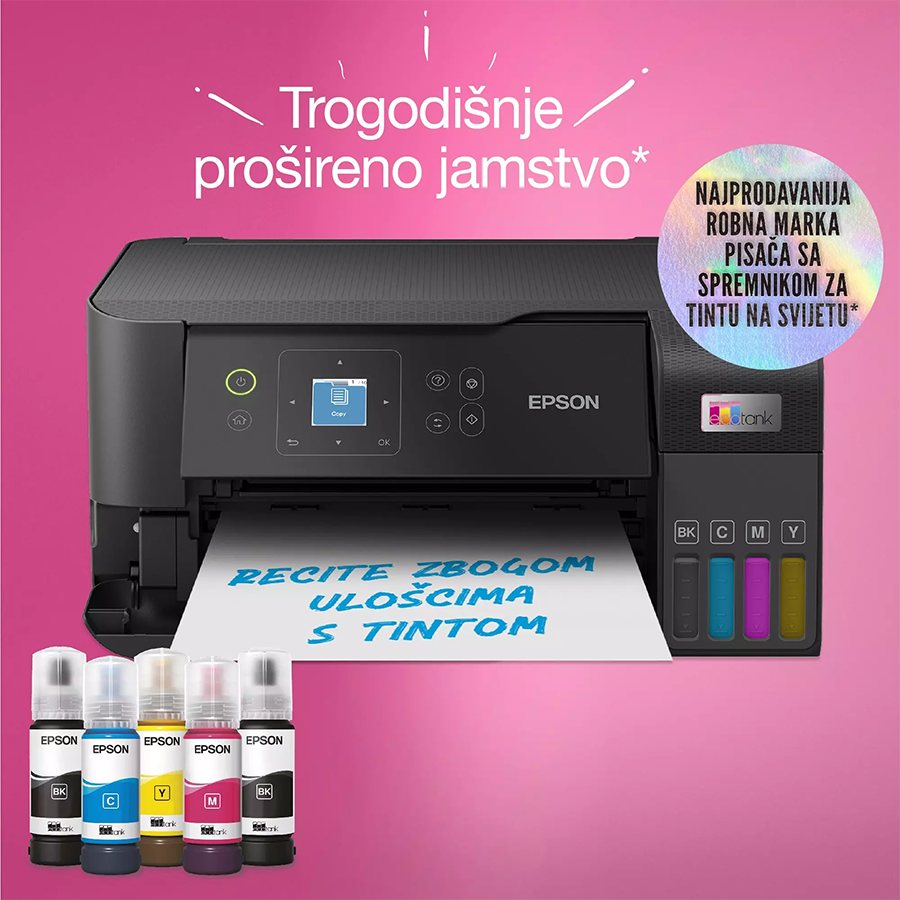 Printer EPSON EcoTank L3560 print/scan/copy/fax Rez.4.800 x 1.200 dpi. 33str/min Monokrom.20str/min Colour. ADF.Duplex.USB, LAN.WiFi. tinte br.103