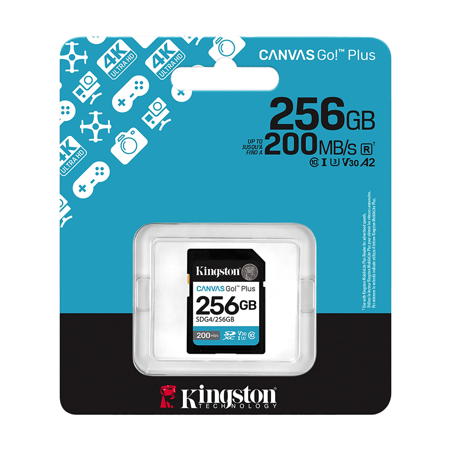 SD card Kingston 256 GB SDG4/256GB SDXC,r/w:200/160MB/s, DSLRs, mirrorless cameras, 4K video