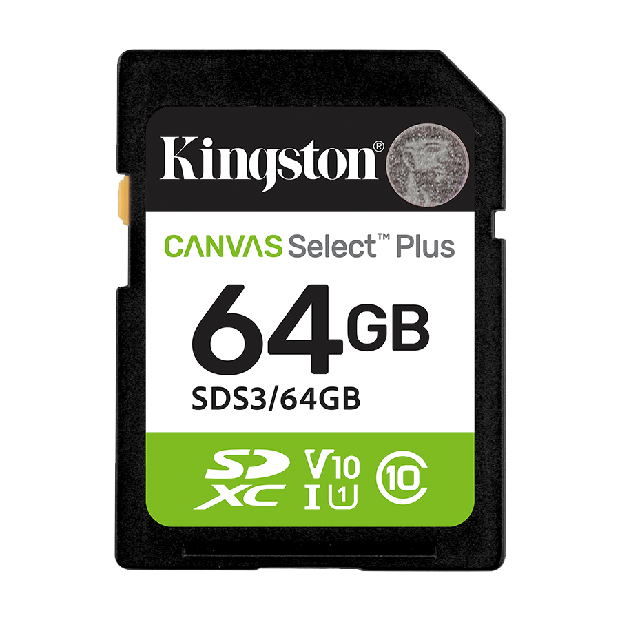 SD card Kingston 64 GB SDS3/64GB Class10 Canvas Select Plus SD adapter, 100MBs Read,Class 10 UHS-I