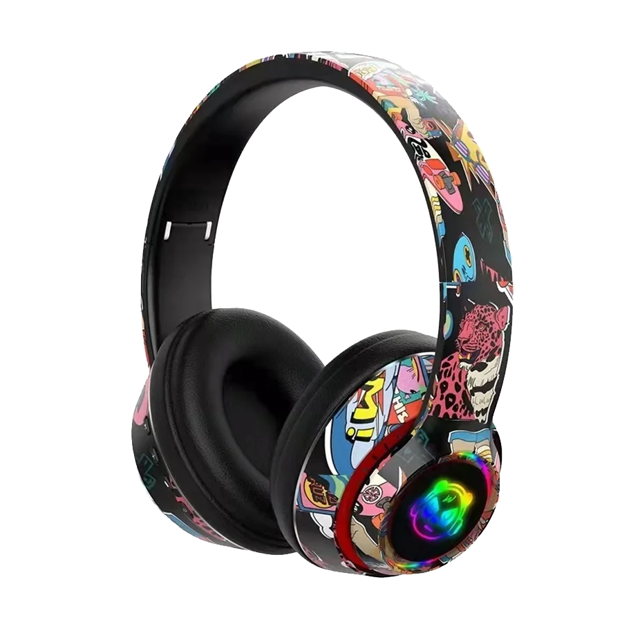 Slušalice bluetooth L750 HiFi RGB stickerbomb design, black