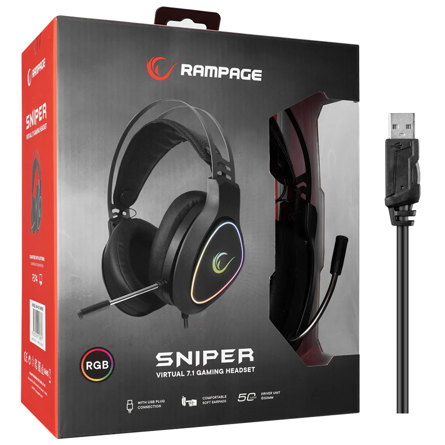 Slušalice sa mikrofonom gaming RAMPAGE RMX-G7 SNIPER Black RGB Illuminated,with Flexible Microphone Gaming, Headset