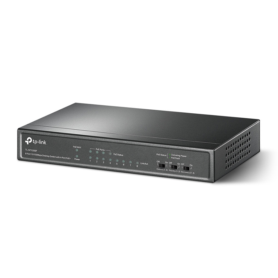 SWITCH TP-Link Tl-SF1008P, 8-port 10/100Mbps Desktop PoE Switch, 8 10/100Mbps RJ45 ports including 4 PoE ports, 57W PoE Power supply, steel case