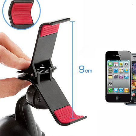 The handle can be mounted on any smooth surface such as windshield in your car. In order to attach the handle, just press the clip. Releasing the clamp leads to separation of the handle from the surface to which it is attached. Can be rotated 360 ° smartphone and set it in any position and at any angle. The longest width of the clamp stretching max. 90mm.