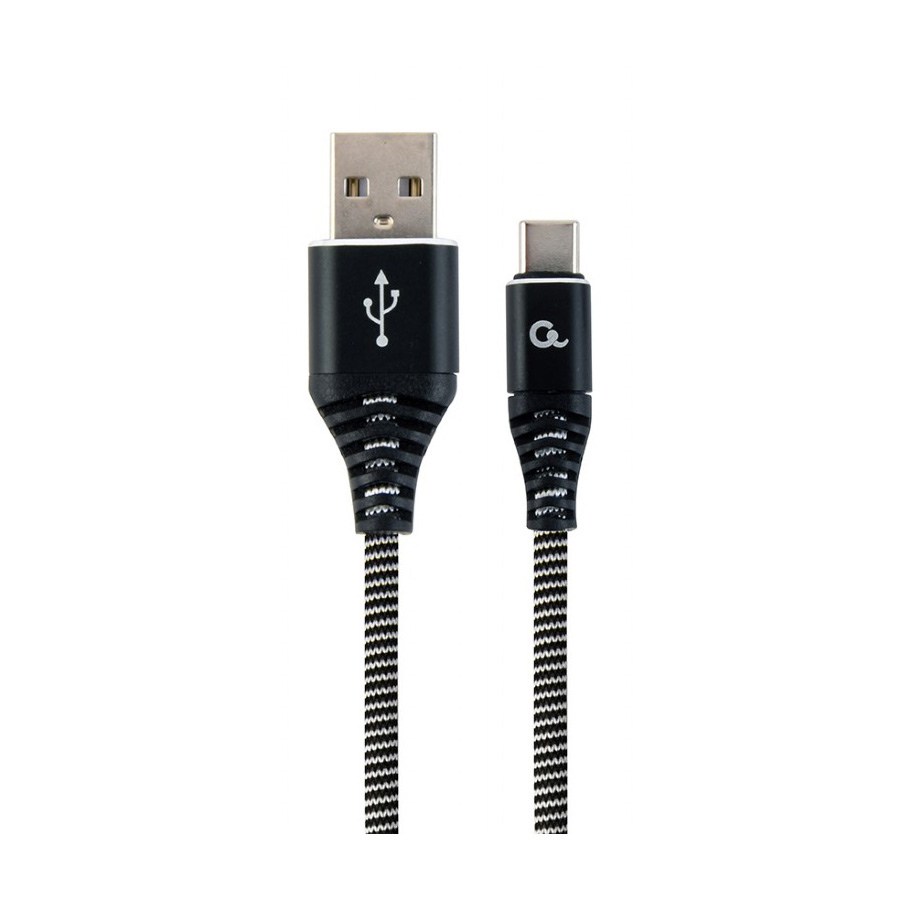 USB 2.0 kabl Premium cotton braided Type-C USB charging and data cable, 1 m, black/white, GEMBIRD CC-USB2B-AMCM-1M-BW