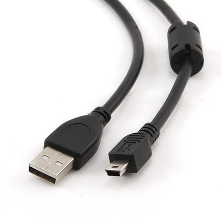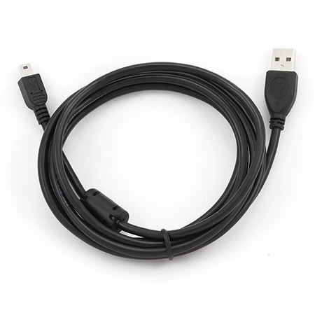 Premium USB 2.0 cable, A plug to mini-USB 5PM plug, 30u” gold-plated contacts suitable for reliable high-speed data transfer, Ferrite core filter