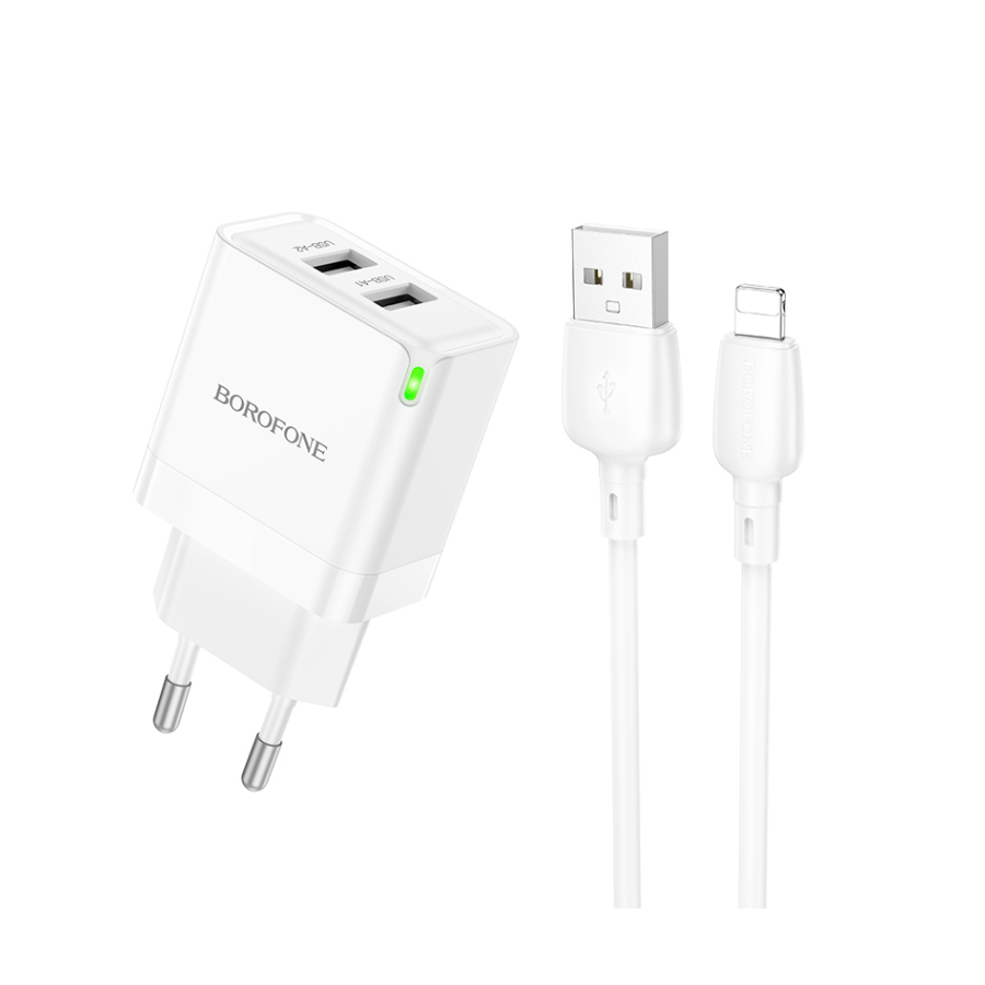 USB punjač sa kablom 1m USB to iPhone/lightning BOROFONE BN15 Strong dual-port set white