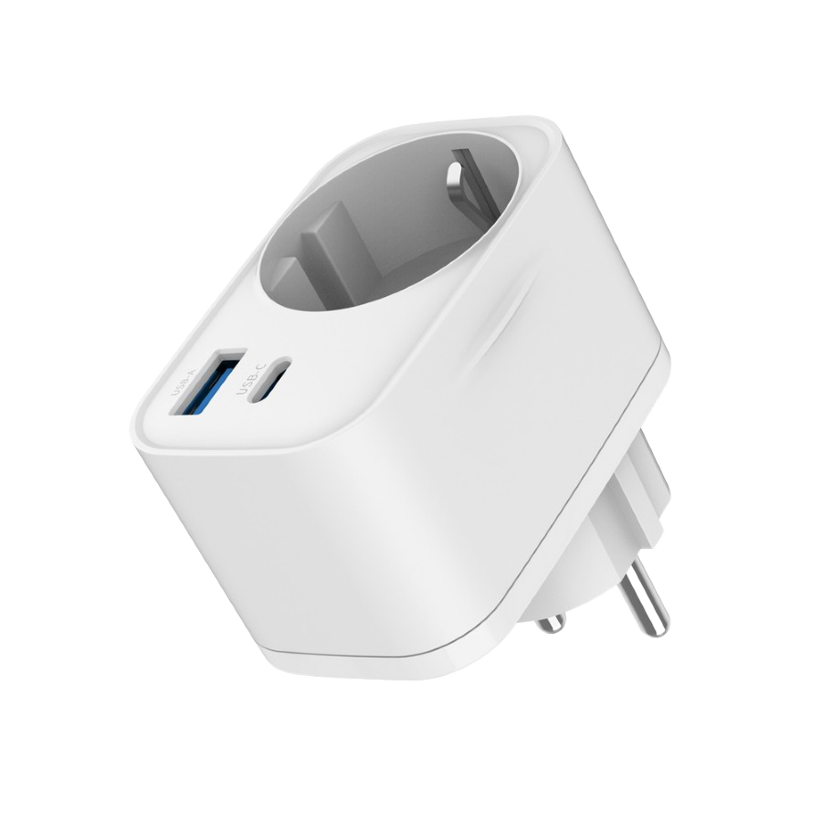 USB punjač Type-C + USB-A + shuko, 3A, white GEMBIRD, TA-ACPDQC20-01-W