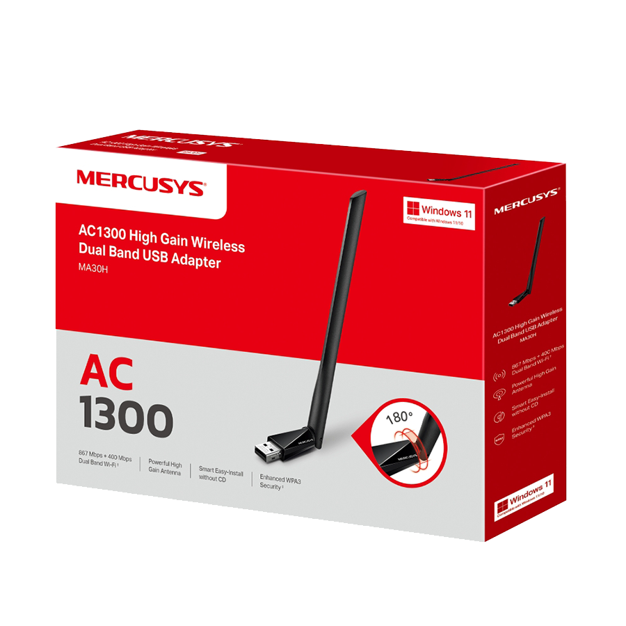 USB WLAN Mercusys MA30H AC1300 High Gain Wi-Fi USB Adapter sa antenom
