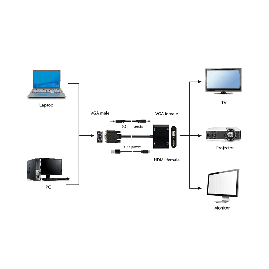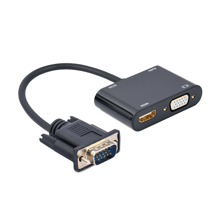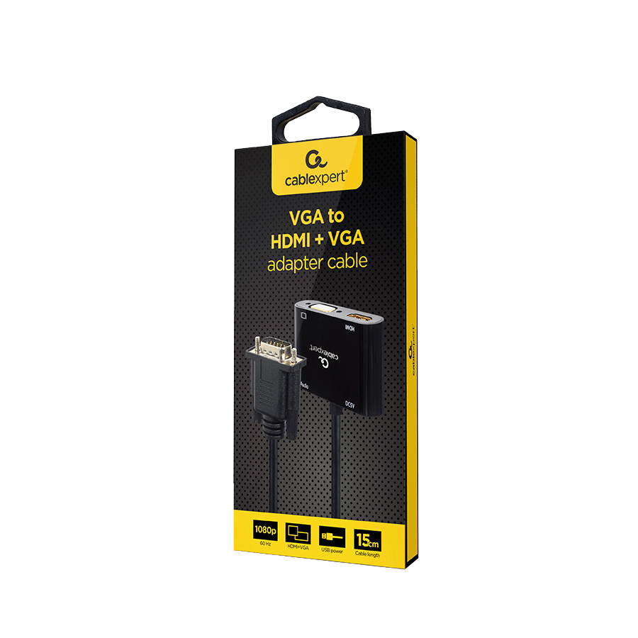 Video adapter VGA to HDMI + VGA adapter 0.15 m, black, GEMBIRD A-VGA-HDMI-02