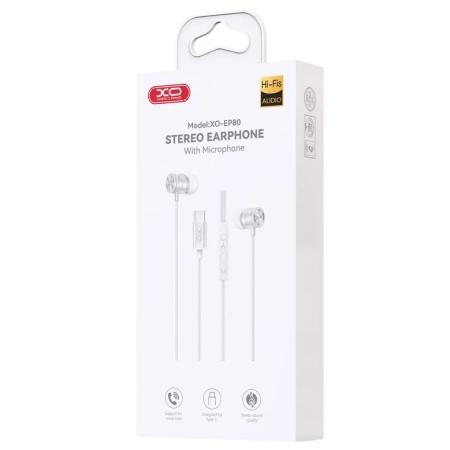 XO In-Ear Slušalice sa mikrofonom Type-C Music EP80 White